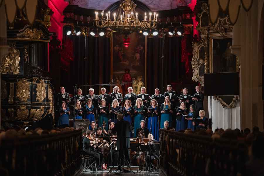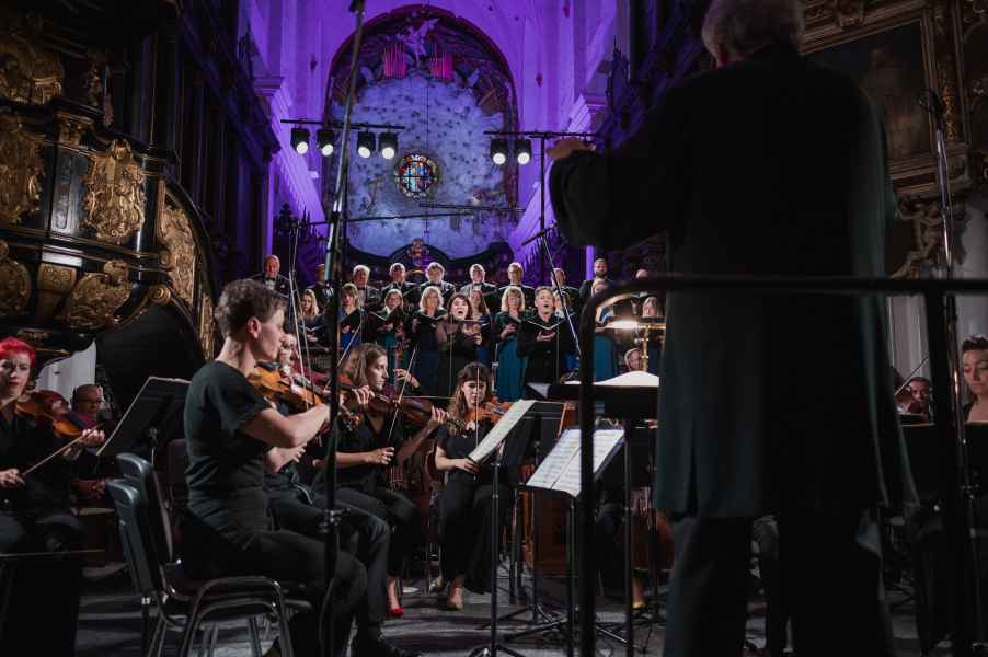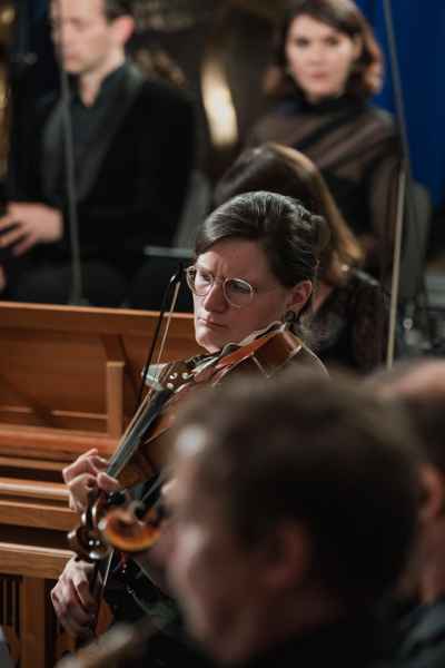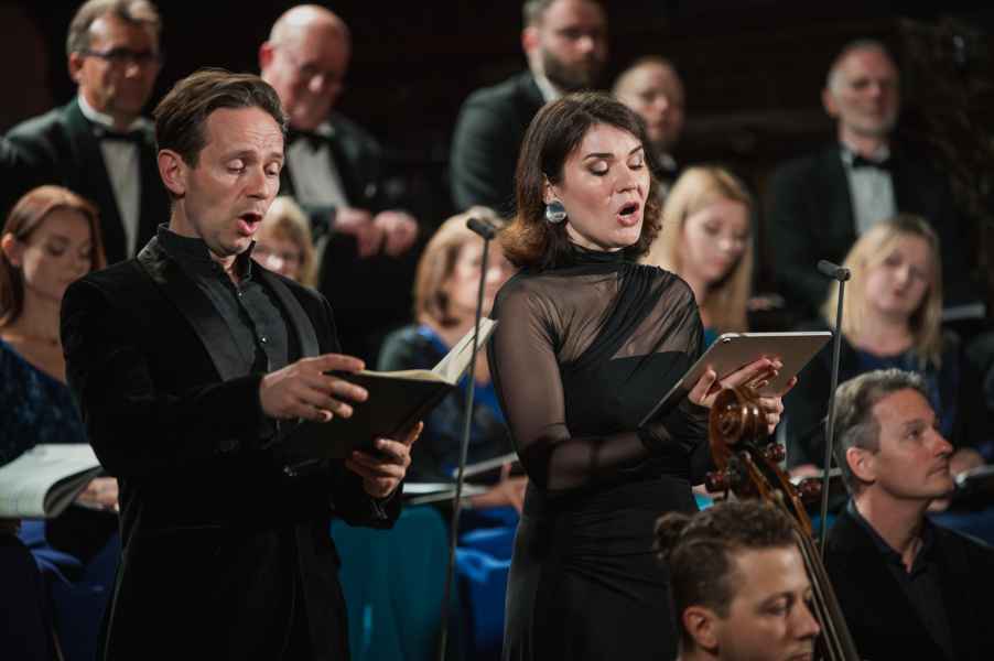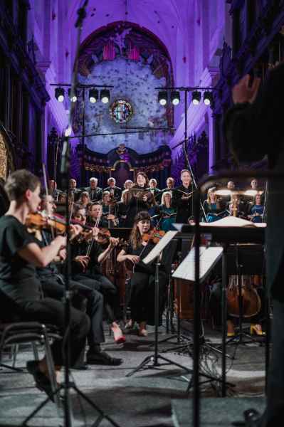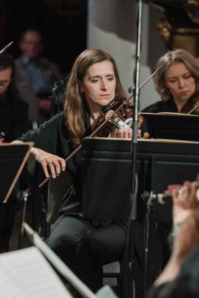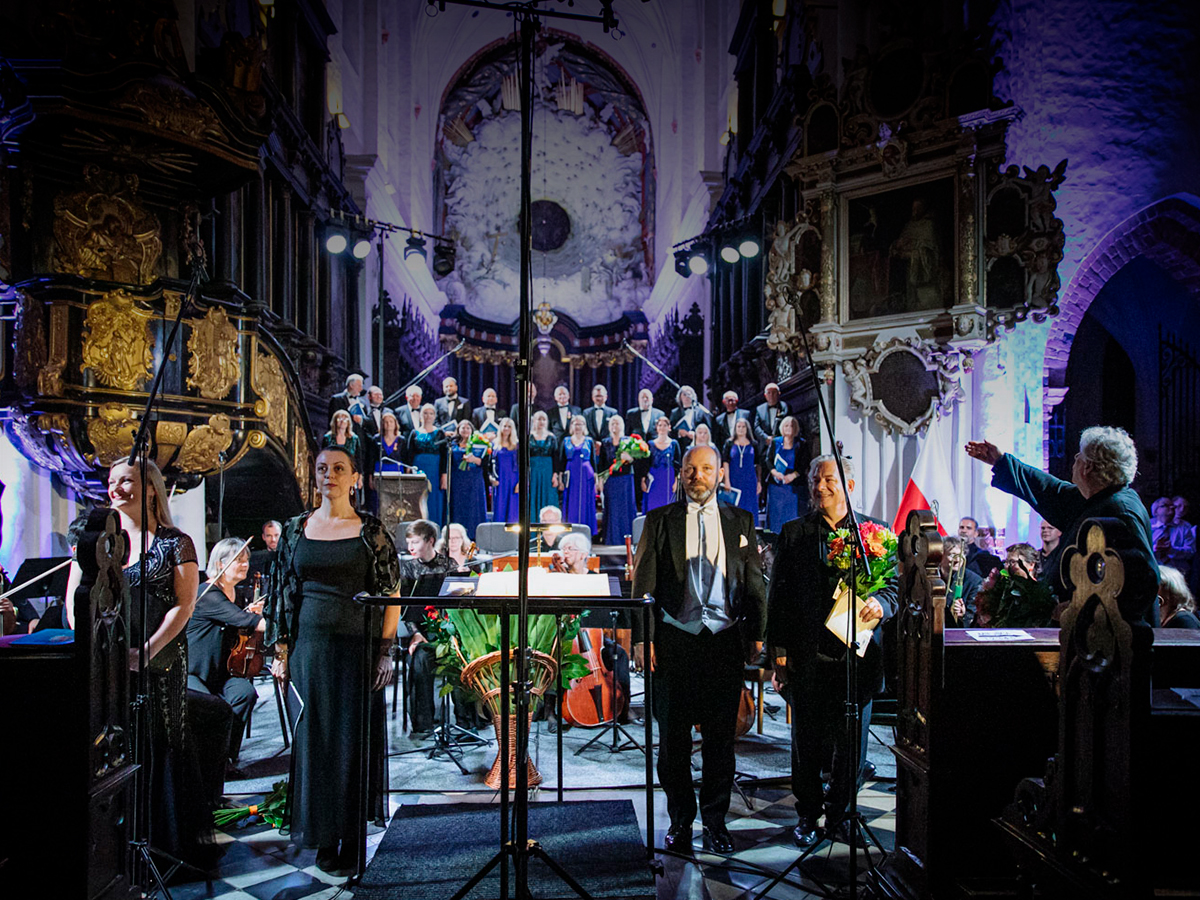 Obok zespołu instrumentalnego (smyczki, 2 oboje, 2 rogi i continuo) i chóru mieszanego w litanii wystąpiła czwórka solistów. Rygory związane z pandemią spowodowały, że soliści śpiewali z pierwszego rzędu ławek w nawie głównej: głosy żeńskie z lewej, a głosy męskie z prawej strony. Artyści musieli się więc obracać za każdym razem, kiedy wstawali i włączali się do śpiewu. Kwartet solistów (przypomnijmy: Robin Johannsen – sopran, Ewa Marciniec – alt, Krystian Krzeszowiak – tenor, Wojtek Gierlach – bas) został bardzo dobrze dobrany, ich głosy współbrzmiały we właściwych proporcjach, a kolejne arie, duety i kwartety były popisami szlachetnego i pięknego śpiewu zgodnego z duchem i regułami osiemnastowiecznego wykonawstwa. W ostatniej części litanii Robin Johannsen wyśpiewała Agnus Dei z miłą dla ucha i godną podziwu lekkością.