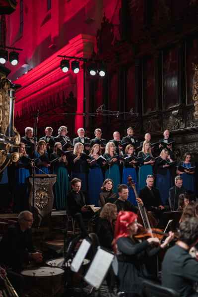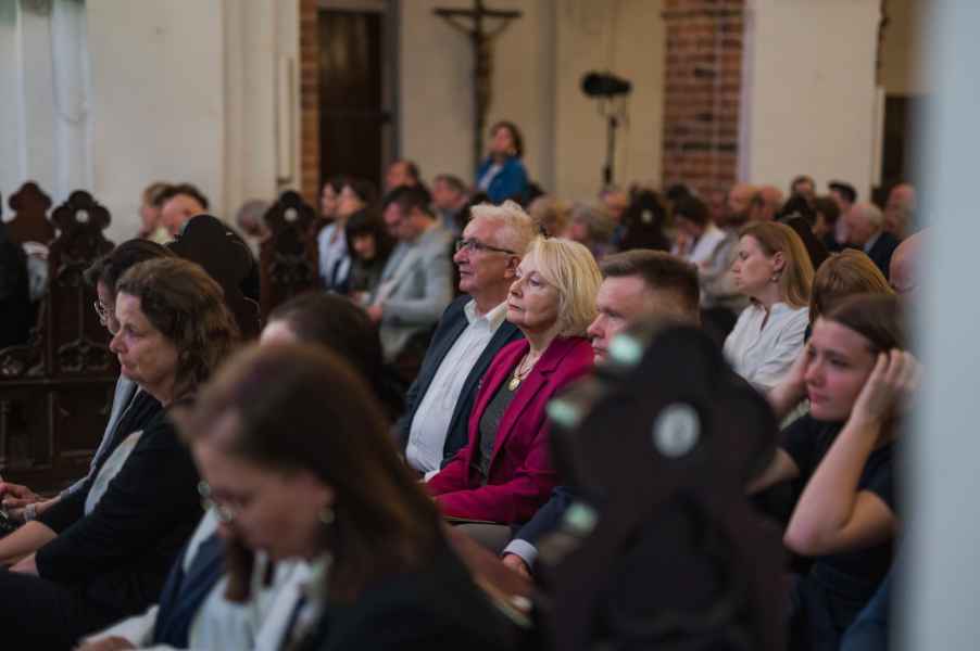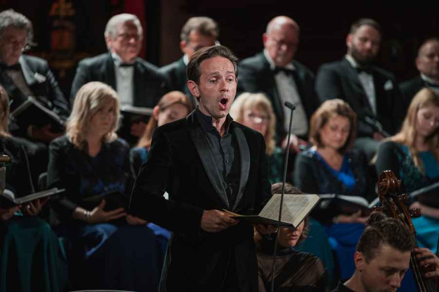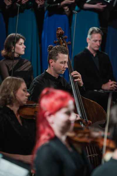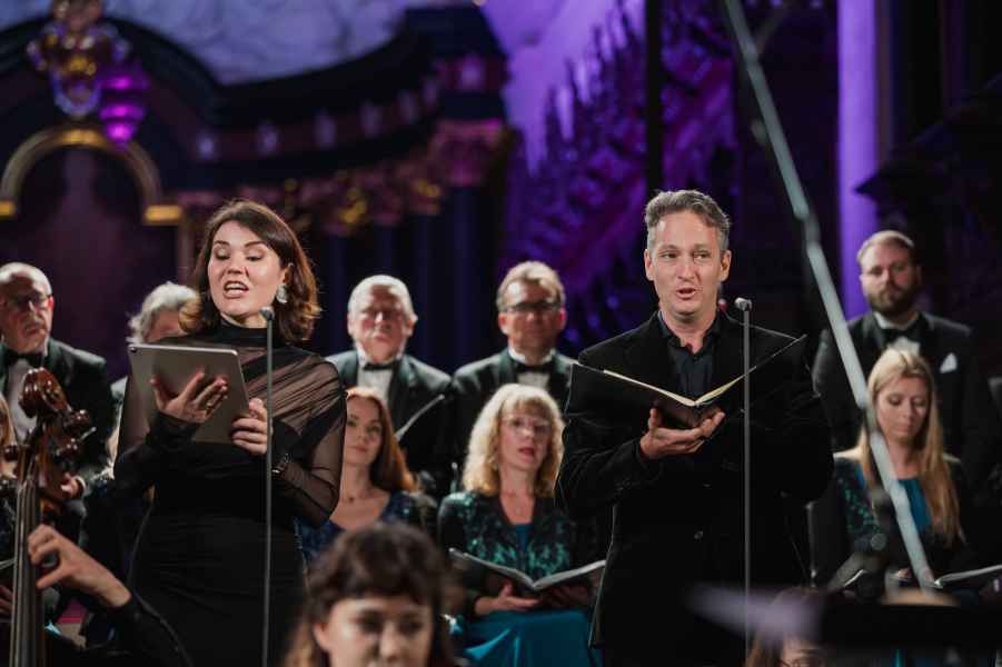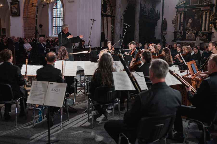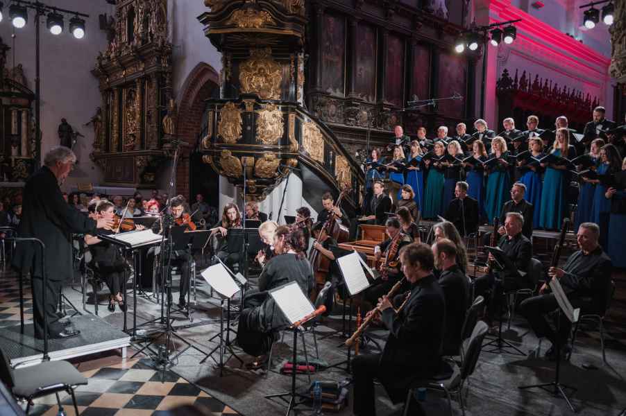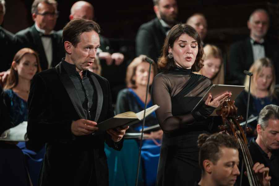 Obok zespołu instrumentalnego (smyczki, 2 oboje, 2 rogi i continuo) i chóru mieszanego w litanii wystąpiła czwórka solistów. Rygory związane z pandemią spowodowały, że soliści śpiewali z pierwszego rzędu ławek w nawie głównej: głosy żeńskie z lewej, a głosy męskie z prawej strony. Artyści musieli się więc obracać za każdym razem, kiedy wstawali i włączali się do śpiewu. Kwartet solistów (przypomnijmy: Robin Johannsen – sopran, Ewa Marciniec – alt, Krystian Krzeszowiak – tenor, Wojtek Gierlach – bas) został bardzo dobrze dobrany, ich głosy współbrzmiały we właściwych proporcjach, a kolejne arie, duety i kwartety były popisami szlachetnego i pięknego śpiewu zgodnego z duchem i regułami osiemnastowiecznego wykonawstwa. W ostatniej części litanii Robin Johannsen wyśpiewała Agnus Dei z miłą dla ucha i godną podziwu lekkością.