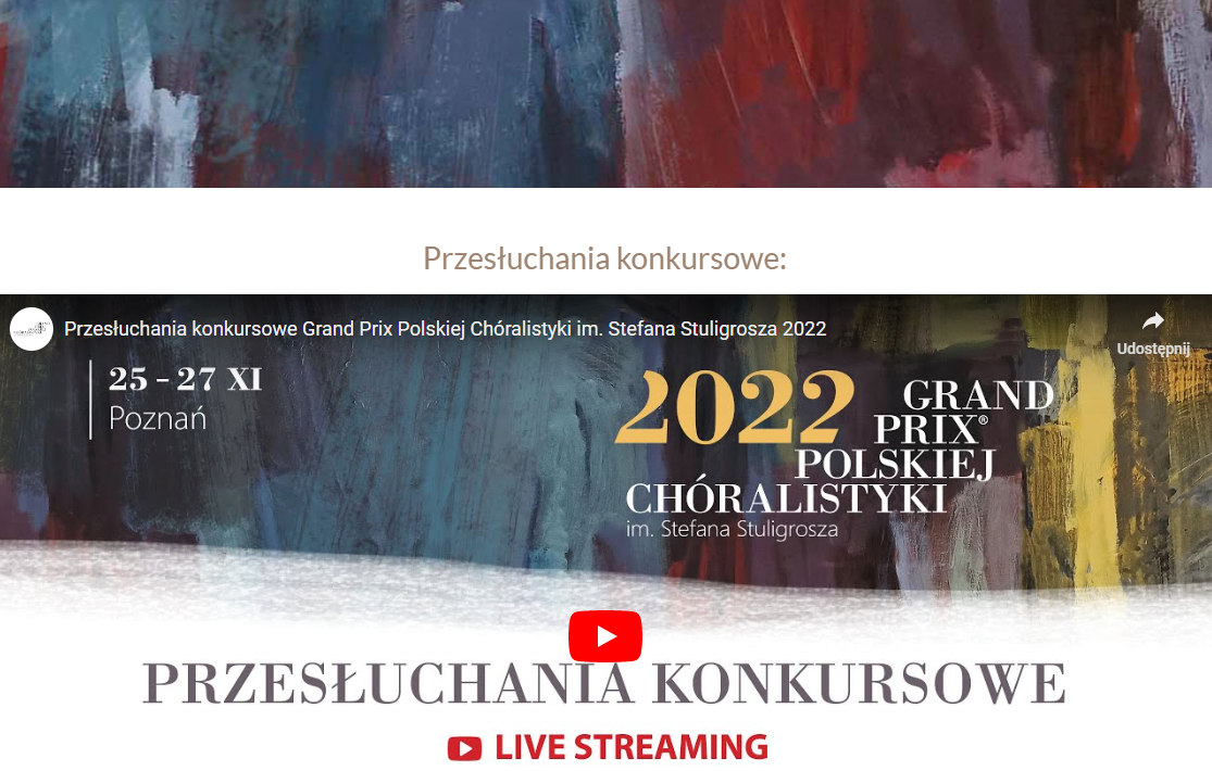 Z radością dzielimy się informacją o zaproszeniu Polskiego Chóru Kameralnego do otwarcia Grand Prix Polskiej Chóralistyki im. Stefana Stuligrosza w Poznaniu.